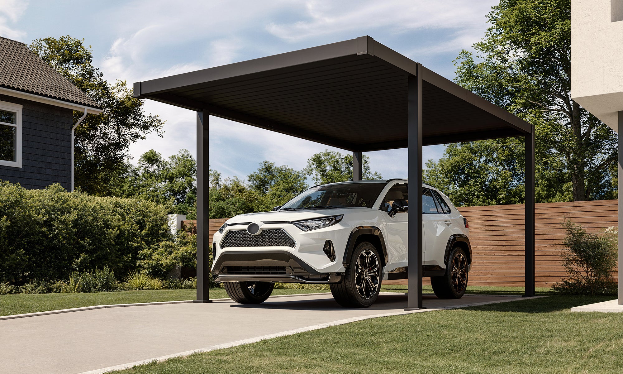 Crafted from premium aluminium, it boasts an adjustable louvered roof that allows you to control the amount of sunlight or shade you desire.