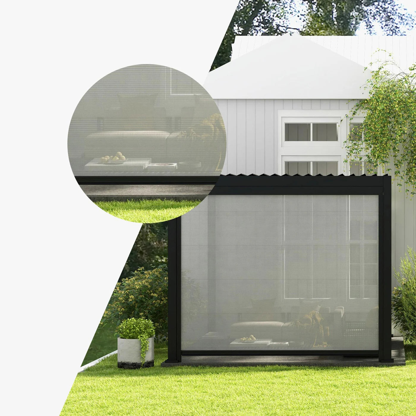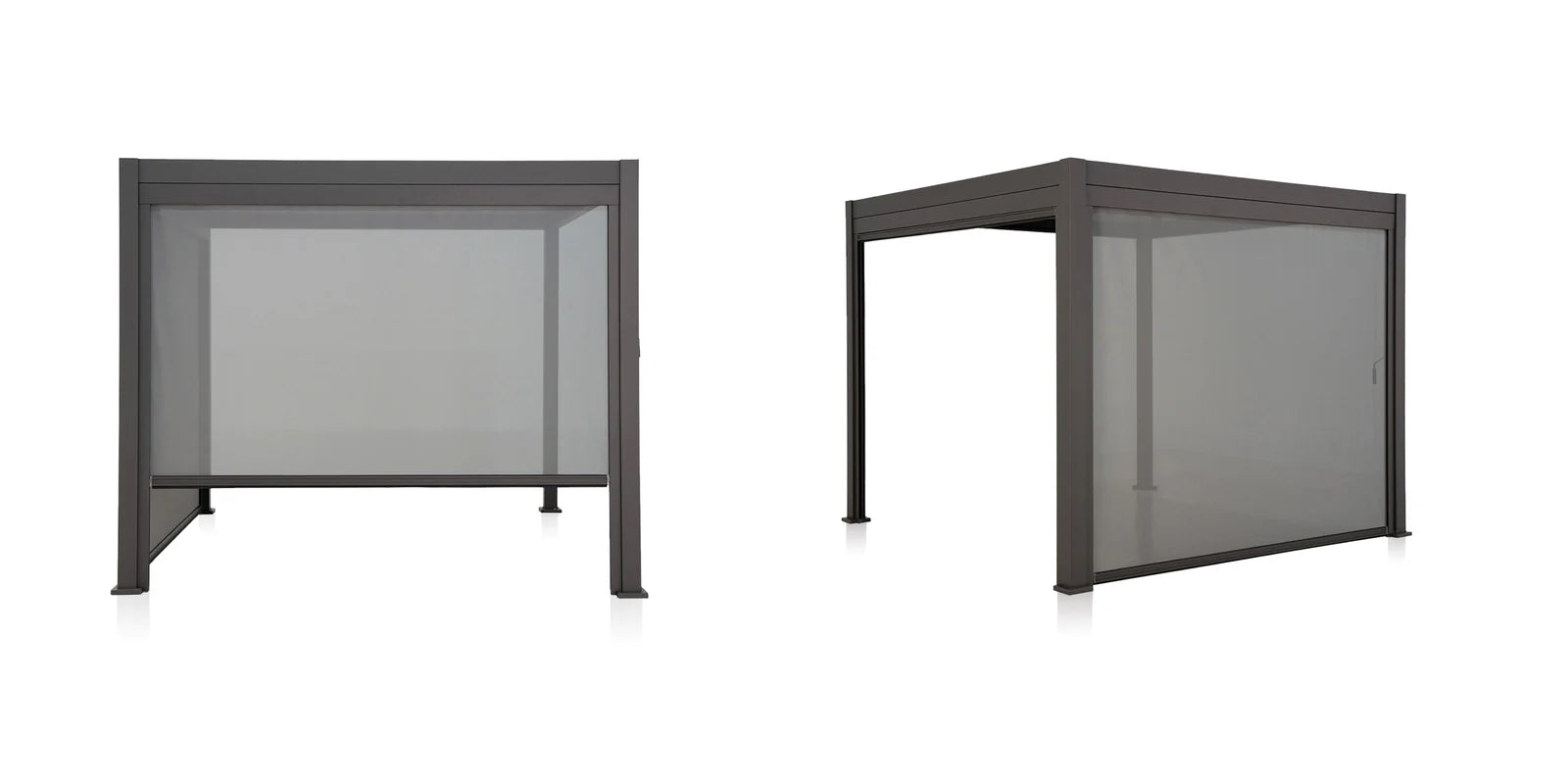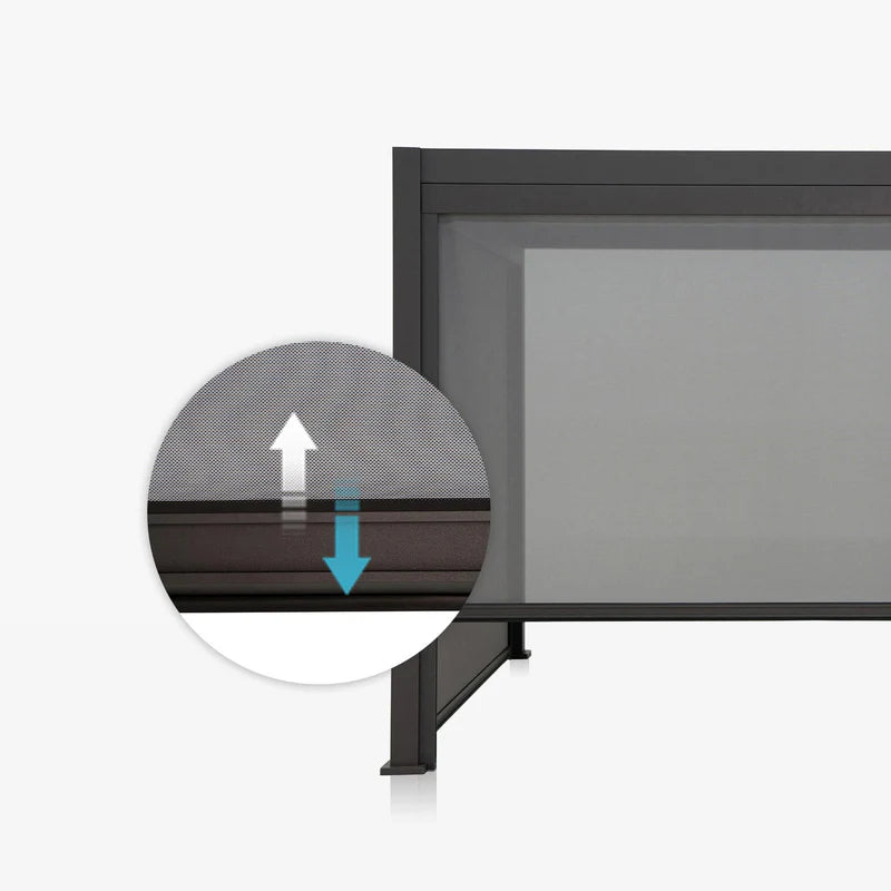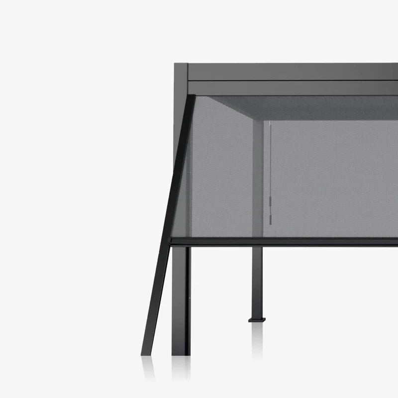 Give your pergola an extra touch of privacy with our retractable screen system. Breathable, waterproof Texteline fabric provides added shade while protecting you from annoying insects and prying eyes. With our integrated handle, you can open or close it effortlessly, as and when you need it. A durable, rust-resistant aluminum frame ensures years of smooth and effortless protection. And with a line of color options to match your Mirador pergola, it is the perfect blend of form and function.